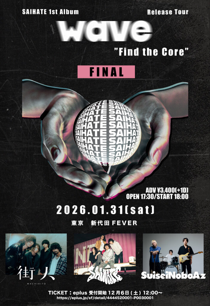 1月31日(土)新代田FEVERSAIHATE主催「Find The Core」FINAL17:00開場/18:00開演 前売り 3,400円(D別)