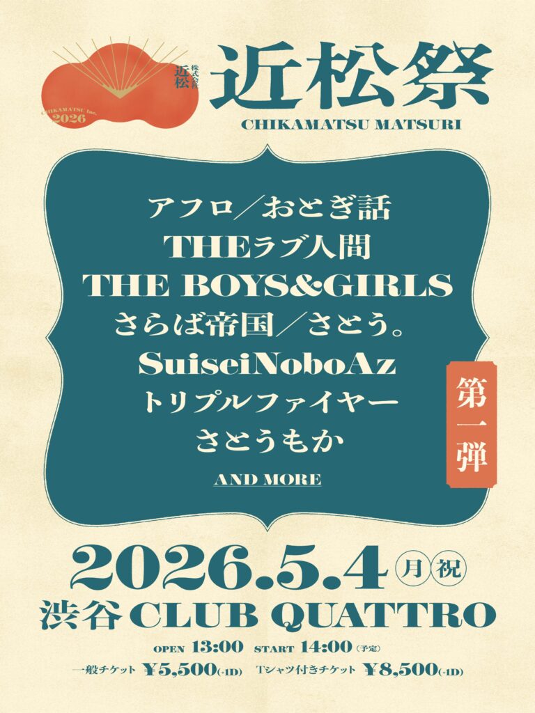 5月4日(月・祝)@渋谷CLUB QUATTRO「近松祭 2026」13:00開場/14:00開演 前売り5,500円(D別)